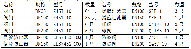 3.材料內(nèi)容:閥門、防盜閥、過濾器等
