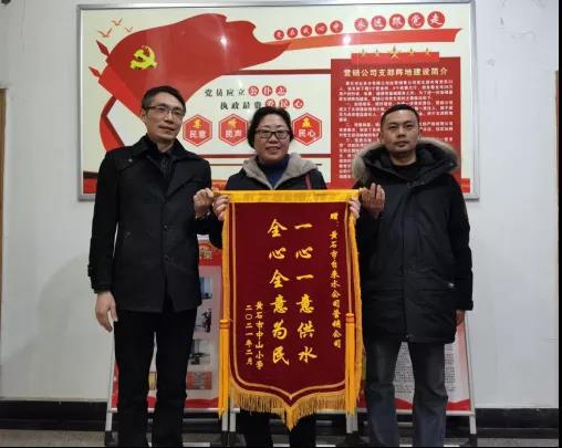 2月26日,中山小學(xué)向市自來水有限公司求助,因新建教學(xué)樓,用水量突增,導(dǎo)致水壓降低,嚴(yán)重影響學(xué)校正常用水。市自來水有限公司立即組織人員趕赴現(xiàn)場,勘察情況,分析原因,提出解決方案,并加班加點(diǎn)免費(fèi)為學(xué)校安裝戶內(nèi)加壓水泵,解決了學(xué)校的用水難題,保障了學(xué)生安心上課。其后,中山小學(xué)送來錦旗:一心一意供水,全心全意為民。