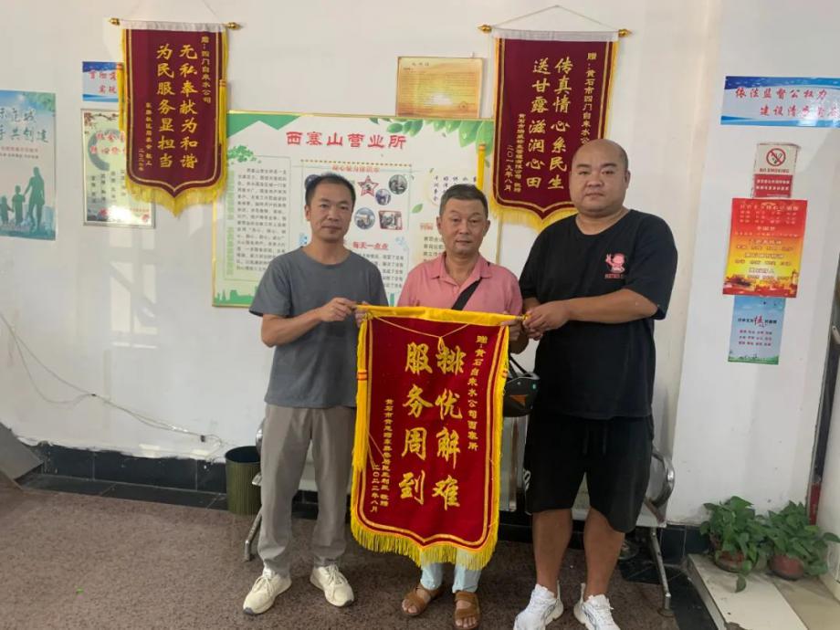 8月9日,陽光灼熱卻擋不住用戶感激之情,市民向市自來水有限公司送上“排憂解難 服務(wù)周到”錦旗,感謝公司及時(shí)發(fā)現(xiàn)市民戶內(nèi)管線漏水,免費(fèi)更換管線維修,保障市民家庭用水。