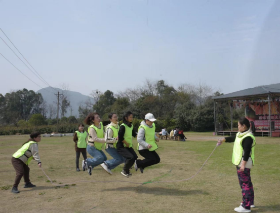 緊接著,女職工們在揉肩捶背、花開花落等熱身破冰運動后,組成5隊進(jìn)行PK,團(tuán)建趣味活動內(nèi)容豐富多彩,既有跳大繩等傳統(tǒng)的體育項目,也有考驗團(tuán)隊默契配合的“解手鏈”,還有考驗智慧的“算二十四點”。隊員們情緒高漲,各顯神通,使出渾身解數(shù)。整個賽場熱鬧非凡,口號聲、加油聲、吶喊聲、歡笑聲不絕于耳。