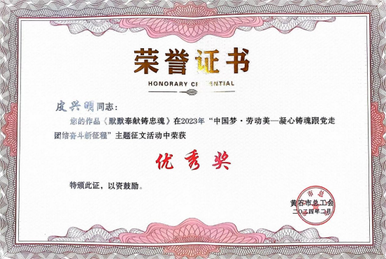 經(jīng)專家組評議,王家里水廠職工皮興明的“默默奉獻(xiàn)鑄忠魂”榮獲優(yōu)秀獎(jiǎng)。
