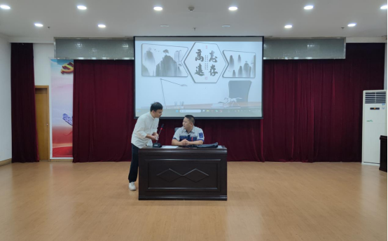 在講廉潔理念環(huán)節(jié),觀看廉潔微視頻《車(chē)輪下的腐敗》和誦讀《愛(ài)蓮說(shuō)》清廉詩(shī)篇。四名職工緊密結(jié)合“污水變清水”的實(shí)際業(yè)務(wù),自編自導(dǎo)自演了一部廉潔從業(yè)情景劇。他們以身邊人為原型,演繹身邊事,生動(dòng)形象地教育引導(dǎo)全體員工要知敬畏、存戒懼、守底線,共同營(yíng)造風(fēng)清氣正的工作氛圍。