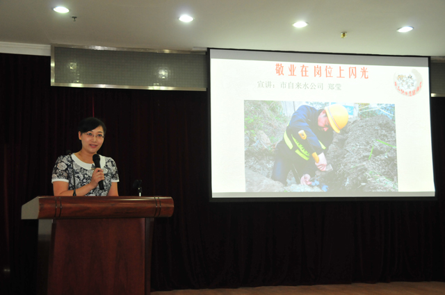 如圖:公司宣講員鄭瑩同志正在宣講王煒同志的先進事跡
