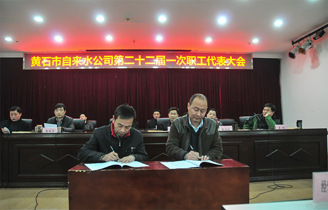 與會(huì)代表認(rèn)真聽取并審議通過了《公司工作報(bào)告》、《黃石市自來(lái)水公司“十三五”供水發(fā)展規(guī)劃要點(diǎn)(草案)》、《關(guān)于公司加入武漢城市圈職工重大疾病醫(yī)療互助的議案》、《關(guān)于實(shí)行公司制改造的議案》,并對(duì)公司領(lǐng)導(dǎo)班子及班子成員進(jìn)行了民主評(píng)議。公司總經(jīng)理劉子俊對(duì)職工代表提出的生產(chǎn)經(jīng)營(yíng)、職工培訓(xùn)、智能信息運(yùn)用、職工福利等方面的意見和建議一一進(jìn)行了解答。他代表公司與各基層單位簽定了《2016年度量質(zhì)化考核責(zé)任書》、《2016年度績(jī)效考核責(zé)任書》。