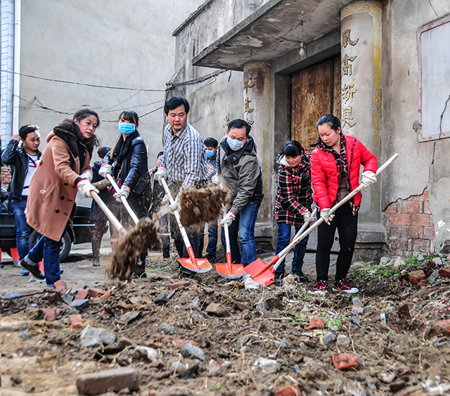 黨員干部參加新閘社區(qū)衛(wèi)生整治活動。紀云霞攝