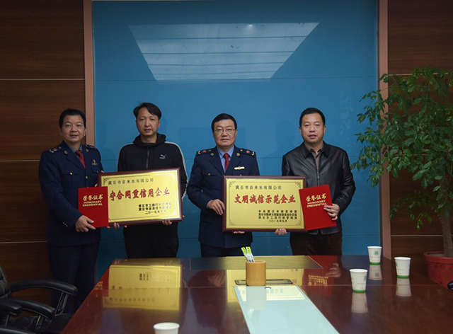 近日,公司獲得黃石市2017年度“文明誠信示范企業(yè)”和2015-2016年度“守合同重信用企業(yè)”榮譽稱號。
