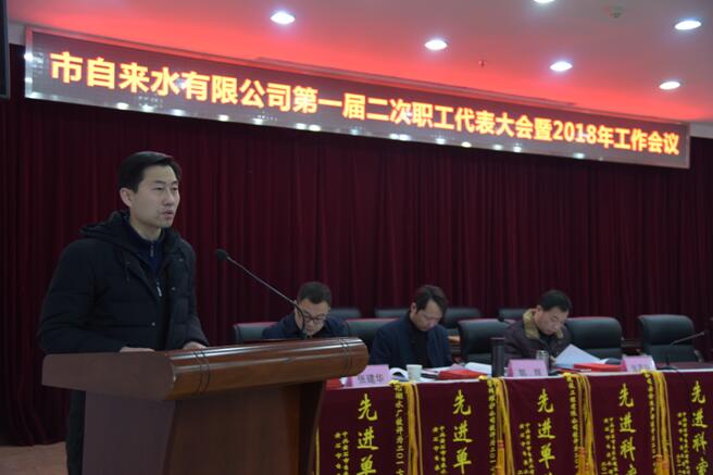 會(huì)上對(duì)2017年度先進(jìn)集體和個(gè)人進(jìn)行了表彰。接著,公司黨委書記、董事長(zhǎng)余曦同志代表班子作了2017年工作報(bào)告,他在報(bào)告中客觀詳實(shí)地總結(jié)了2017年公司的各項(xiàng)工作,重點(diǎn)對(duì)供水安全、項(xiàng)目建設(shè)、融資工作、改革創(chuàng)新、供水服務(wù)、應(yīng)急處置、黨建群團(tuán)工作七個(gè)方面進(jìn)行了總結(jié),各項(xiàng)工作取得了實(shí)效,全年實(shí)現(xiàn)售水量8398萬(wàn)噸,實(shí)現(xiàn)經(jīng)營(yíng)總收入2.05億元,產(chǎn)銷差率23.33%,管網(wǎng)水質(zhì)綜合合格率達(dá)到100%,全年無(wú)重大安全事故發(fā)生。報(bào)告中還強(qiáng)調(diào)了2018年的主要計(jì)劃和重點(diǎn)工作:一是以保障供水能力為抓手,大力推進(jìn)項(xiàng)目建設(shè)。二是以體制機(jī)制建設(shè)為動(dòng)力,繼續(xù)深化改革創(chuàng)新。三是以隊(duì)伍建設(shè)為保證,促進(jìn)企業(yè)健康發(fā)展。四是以全面從嚴(yán)治黨為重點(diǎn),營(yíng)造干事創(chuàng)業(yè)氛圍。五是以職工利益為出發(fā)點(diǎn),增強(qiáng)企業(yè)凝聚力和職工幸福感。
