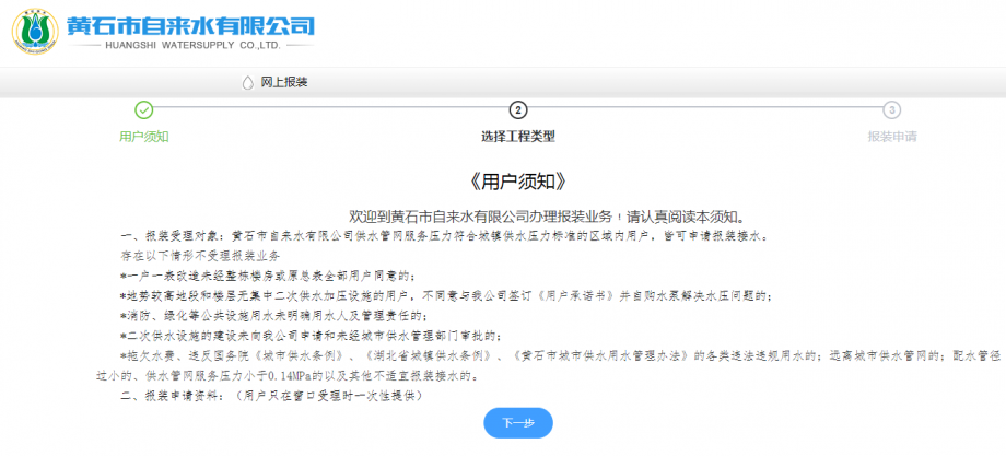 為了進(jìn)一步優(yōu)化營(yíng)商服務(wù),公司創(chuàng)新采用“互聯(lián)網(wǎng)+供水新模式”,開(kāi)通用戶網(wǎng)上報(bào)裝,實(shí)現(xiàn)“最多跑一次”。即日起用戶辦理報(bào)裝可使用“黃石市自來(lái)水有限公司”微信公眾號(hào)或者黃石市自來(lái)水有限公司官方網(wǎng)站(http://www.geotilities.com)中網(wǎng)上報(bào)裝功能,報(bào)裝資料經(jīng)后臺(tái)審核合格后,業(yè)務(wù)人員會(huì)主動(dòng)與用戶取得聯(lián)系,做好對(duì)接服務(wù)工作,避免了用戶的來(lái)回奔波,形成線上線下功能互補(bǔ),提高用戶滿意度。