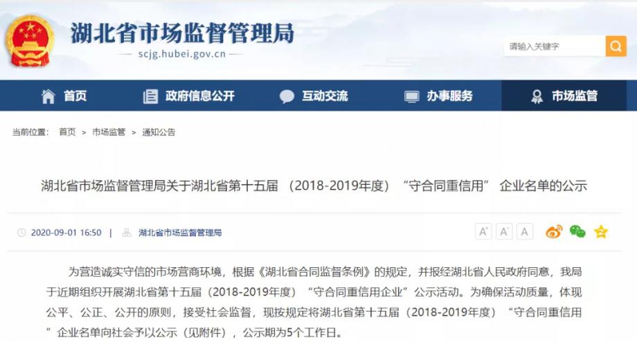 為營造誠實(shí)守信的市場(chǎng)營商環(huán)境,今年,省市場(chǎng)監(jiān)督管理局組織開展了湖北省第十五屆(2018-2019年度)守合同重信用企業(yè)評(píng)選活動(dòng),并進(jìn)行了名單公示。