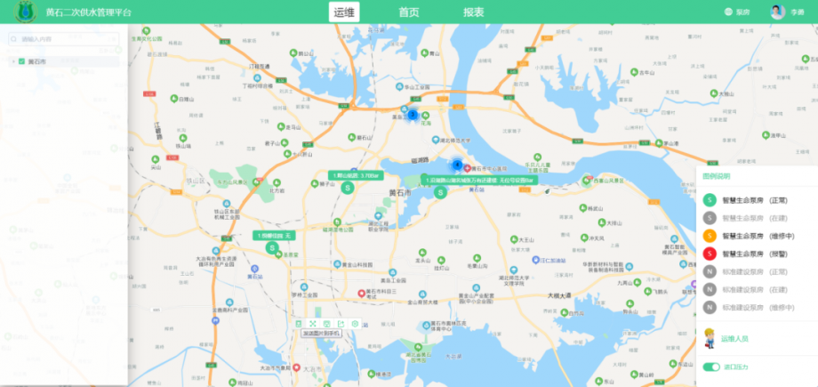 工作人員可以通過網(wǎng)頁、手機(jī)APP、微信小程序等渠道,接入該平臺,24小時實(shí)時監(jiān)控二次供水泵房設(shè)備設(shè)施的運(yùn)行狀態(tài)。且隨著接入泵房數(shù)量的增加,黃石市自來水有限公司將通過數(shù)據(jù)分析/預(yù)警、電子巡檢和人工巡檢相結(jié)合的方式,進(jìn)一步降低運(yùn)維成本,有效解決設(shè)備多、維護(hù)難、無法及時響應(yīng)等痛點(diǎn),變被動為主動,提高供水服務(wù)質(zhì)量。