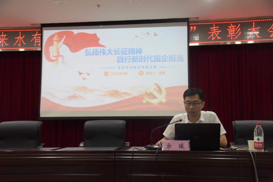 公司黨委書記、董事長余曦同志以《弘揚偉大長征精神 踐行新時代國企擔(dān)當(dāng)》為題講授黨課,生動的回顧了長征的宏偉歷程,從實事求是、密切聯(lián)系群眾、艱苦奮斗、愛國愛人民等四個方面深刻剖析了長征精神內(nèi)涵,并結(jié)合公司工作實際,強調(diào):一是要堅定理想信念,踐行初心使命;二是堅持艱苦奮斗,全力保障民生;三是堅持實事求是,深化改革轉(zhuǎn)型;四是深化作風(fēng)建設(shè),永葆黨員本色。