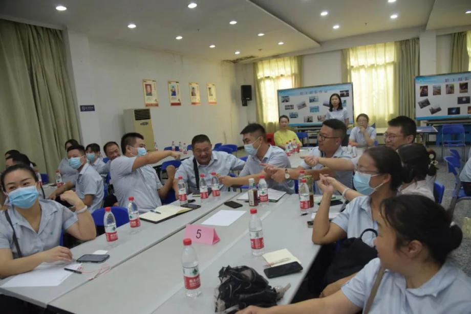 理解責(zé)任與忠誠、做到愛崗敬業(yè),既是滿足“孩子面包自由”的生活需求,也是實現(xiàn)自我價值提升的途徑,更有著滿足全市市民用水需求的重要意義。來自知書習(xí)禮(黃石)文化傳播有限公司的老師諄諄引導(dǎo)參與人員認知工作的意義、崗位的責(zé)任。職工們分組圍坐,組建團隊,為團隊冠名,選出心儀的領(lǐng)隊,在“移花接木”的小游戲中與隊友開始熟絡(luò),踴躍搶答老師提出的問題,為團隊爭奪到獎分歡呼雀躍,課堂氣氛活躍。
