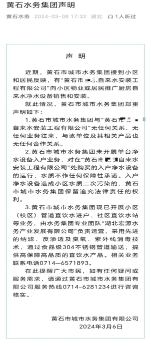 黃石市城市水務集團有限公司發(fā)布的聲明。