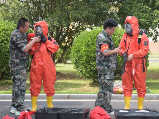 隨著一聲令下,演練拉開序幕。氯氣泄漏報(bào)警鈴聲響起,氯氣泄漏吸收裝置成功自動(dòng)啟動(dòng),值班人員迅速到場(chǎng)巡視,并通過通訊裝置向指揮長(zhǎng)報(bào)告現(xiàn)場(chǎng)情況。經(jīng)研判,花湖水廠立即啟動(dòng)《氯氣泄漏事故應(yīng)急預(yù)案》,搶修組、警戒組、醫(yī)護(hù)組奔赴現(xiàn)場(chǎng)。警戒線迅速擺放到位,搶修人員穿戴好防化服、佩戴好正壓式空氣呼吸器,攜帶專用工具進(jìn)入泄漏現(xiàn)場(chǎng),進(jìn)行搶險(xiǎn)。經(jīng)過系列應(yīng)急處置,應(yīng)急響應(yīng)解除,花湖水廠恢復(fù)正常生產(chǎn)。演練結(jié)束后,市水務(wù)集團(tuán)副總經(jīng)理袁全保對(duì)本次演練活動(dòng)作點(diǎn)評(píng),針對(duì)演練環(huán)節(jié)存在的不足,提出整改意見。