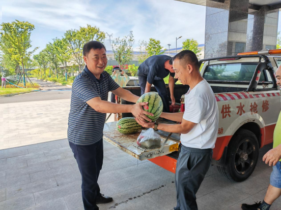 驕陽似火,伏天正盛,酷暑“烤”驗著堅守在戶外的一線職工。為扎實做好防暑降溫工作,把集團的關心關愛送到干部職工的心坎上。7月25日上午,市水務集團兵分四路,深入基層一線和在建工地,開展“送清涼”走訪慰問活動,為高溫下堅守崗位的職工送上礦泉水、西瓜、藥品等防暑用品。
